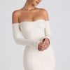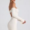 - Off-shoulder long sleeves with split cuffs