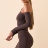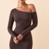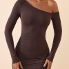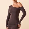 Modal Off-Shoulder Ruched Mini Dress in Chocolate Brown