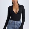 A style you’ll want in every colour, the Yanna bodysuit is crafted from breathable and buttery soft jersey made with TENCEL™ Modal fibres that support a natural dry feeling through moisture control. Designed with thong-back coverage for seamless layering, it’s framed with flared long sleeves and a plunging collared neckline.
