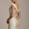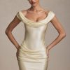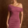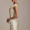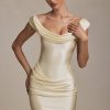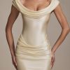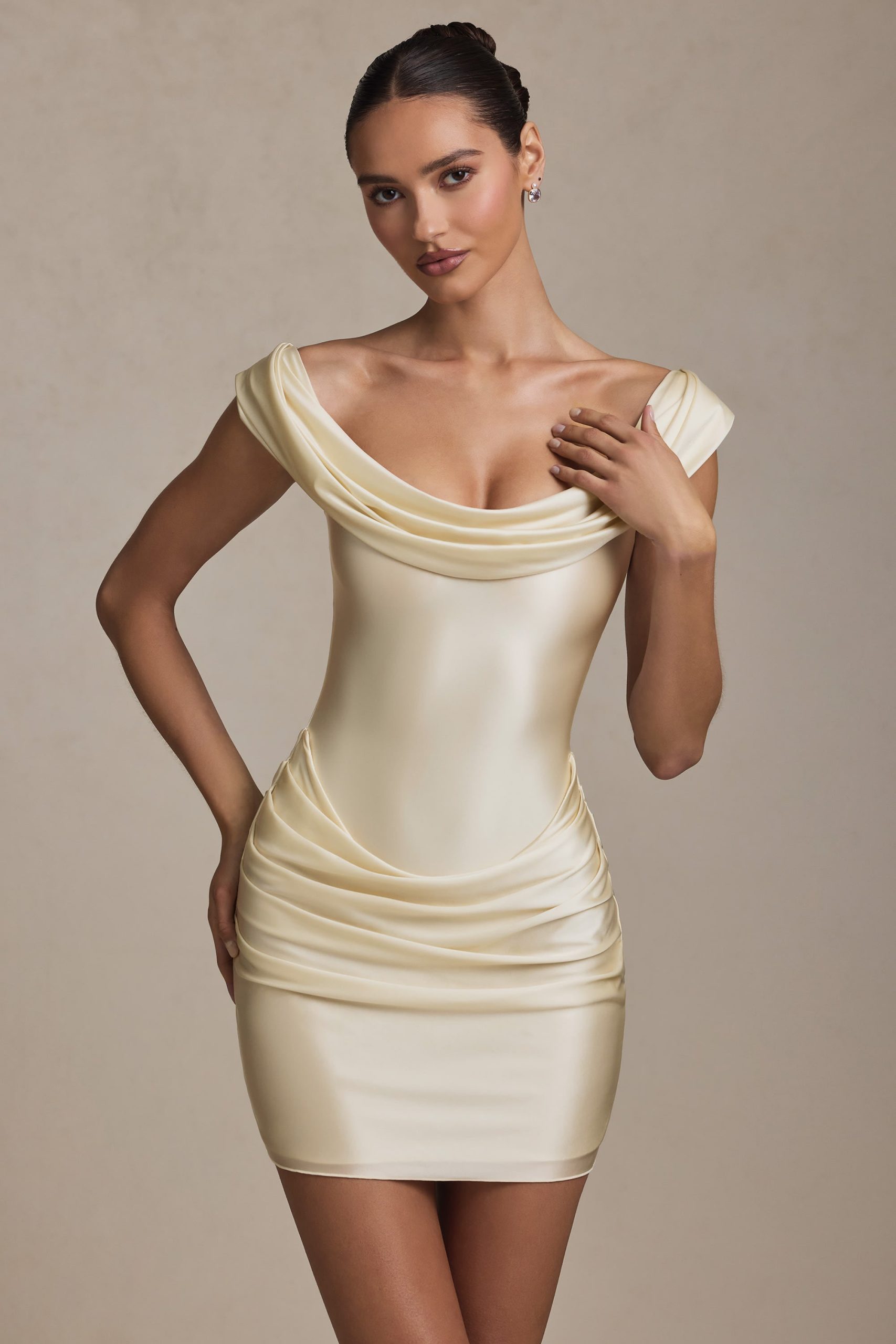 If you love classic silhouettes as much as we do, you’ll love the Maeve mini dress. Crafted from premium high-shine jersey to a figure-defining bodycon silhouette, it features a unique built-in bodysuit for a little extra support and a draped skirt overlay for a universally flattering fit. It’s framed with a cowl neck and dramatic off-shoulder sleeves that add a touch of sultry glamour.