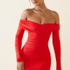 Off-Shoulder Ruched Bodycon Mini Dress in Black