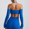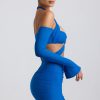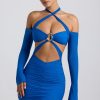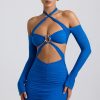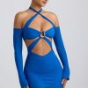 Off-Shoulder Ruched Cut-Out Mini Dress in Cobalt Blue