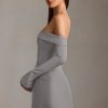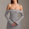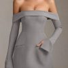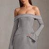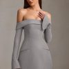 Off-Shoulder Structured A-Line Mini Dress in Grey