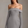 Off-Shoulder Tiered Corset Mini Dress in Berry Red