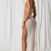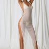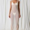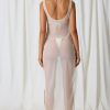 Sheer serenity. Create the ultimate beach-to-bar look with the Pacifica maxi dress. Ideal for slipping on over your favourite swimwear for beachside lunches or trips to the bar, it’s crafted from semi-sheer 20D power mesh with a touch of stretch and cut to a maxi-length silhouette with a scoop neckline. It’s elevated with cut-out detailing at the side, anchored with delicate faux-pearl embellishments that echo the ethereal aesthetic.