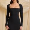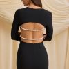 Your party wardrobe just got an upgrade, thanks to our Akari mini dress. Crafted from premium stretch woven fabric that sculpts to your shape and lined with lightweight stretch satin, it’s cut to a signature bodycon silhouette framed with long flared sleeves and a cut-out back detailed with two rows of lustrous faux pearls, cementing the decadent aesthetic of the collection.