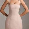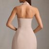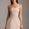 Elevated minimalism. Inspired by classic tailored styles with a signature edge, the Odessa mini dress is crafted from lightweight twill with a stretch-satin lining for enhanced comfort. It features a cinching silhouette with shaping princess seams and an exaggerated A-line skirt to define your shape. It’s framed with an adjustable halterneck strap for your perfect fit.