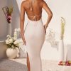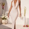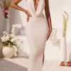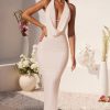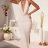 Plunge Cowl Neck Floor Length Dress in Ivory