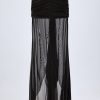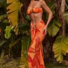 A sheer moment. The Bacalar maxi skirt is crafted from premium, ultra-light 20D stretch mesh for a barely-there feel and maximum impact on your next tropical getaway. Cut to a low-rise silhouette, it features a figure-flattering dipped V-waist, partially lined ruched overlay and a high-low fishtail hem with godet detailing for dynamic movement with every step. It’s embellished with custom floral hardware at the front that pairs back perfectly with our swim separates for a complete resort look.
