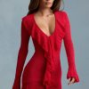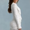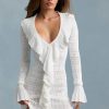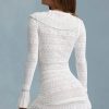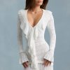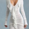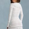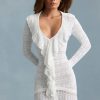 Ruffle-Trim Pointelle-Knit Mini Dress in White
