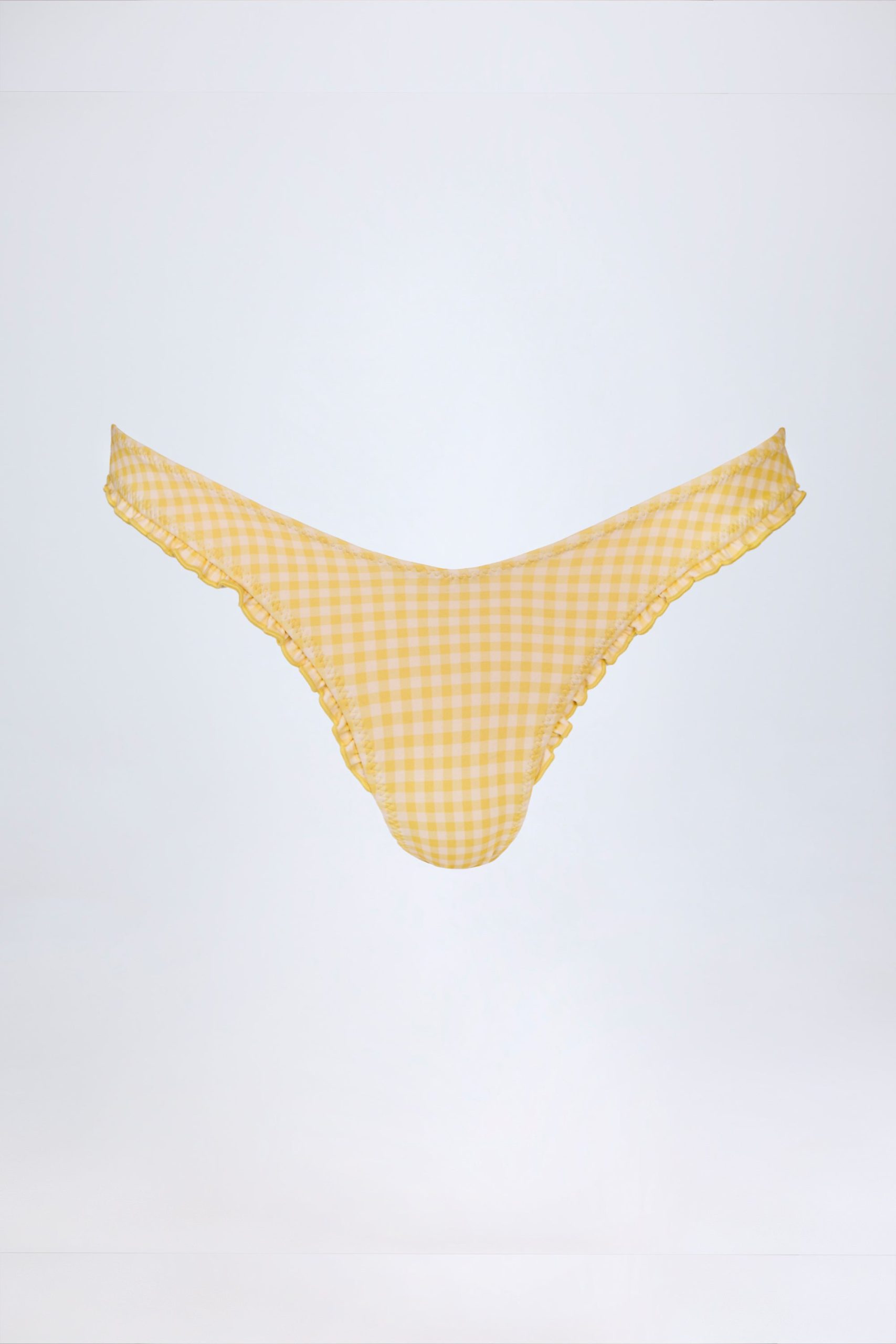 Ruffled Cheeky Bikini Bottoms in Yellow Gingham