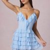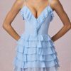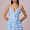Love at first wear. The definition of romantic dressing, the Lolina mini dress is light, floaty and full of movement. Crafted from airy chiffon to an A-line silhouette that flares gently from the waist, it’s brought to life with a plunging neckline and pretty ruffle trims. It features a signature lace-up back and adjustable straps for a fully customisable fit and enhanced support.