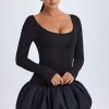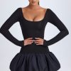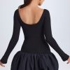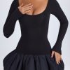 Scoop-Neck Drop-Waist Bubble Hem Mini Dress in Black