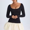 Scoop-Neck Drop-Waist Bubble Hem Mini Dress in Vanilla