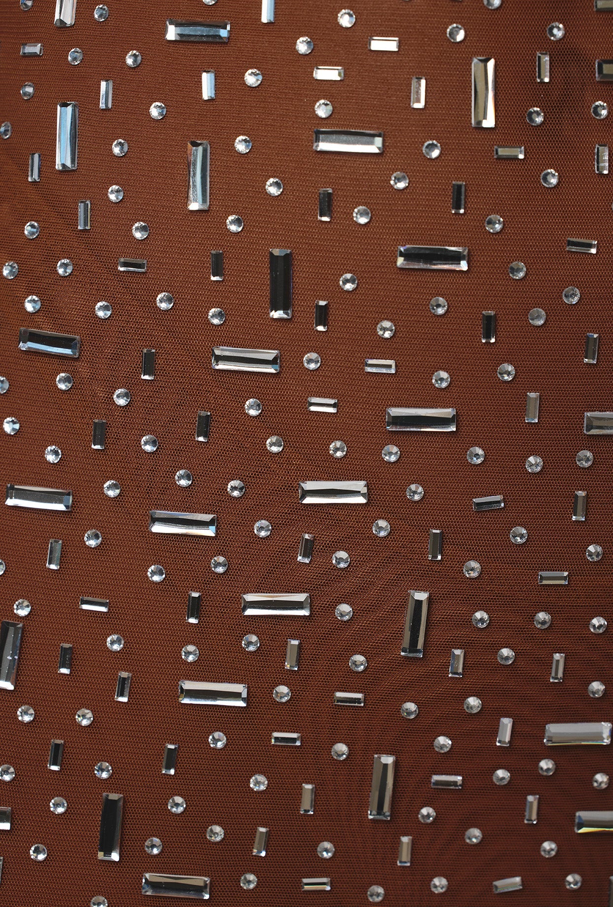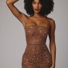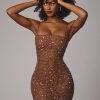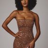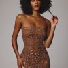 Sheer Embellished Bodycon Mini Dress in Mocha