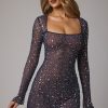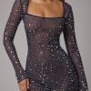 Catch the light. Designed in our premium stretch mesh fabrication with delicate crystal hand embellishment throughout, Zeta is a glittering mini dress made for sparkling evenings. Complete with a square neckline, long embellished sleeves, and a thigh-skimming A-line skirt.