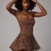 Nights to remember. Crafted in our premium stretch mesh fabric with delicate artisanal hand embellishment throughout, Durrani is a sparkling mini dress designed to captivate. Complete with delicate shoulder straps and an elegant angled mini skirt that falls in gentle pleats.