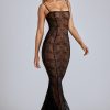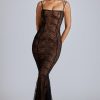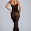 Romantic moments call for delicate lace and the divine Marietta evening gown. Semi sheer and cut from our premium dual-layered mesh, Marietta fits close to the body and features an alluring fishtail skirt with godet detailing.