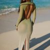 Sunset styling. Sunset styling. Designed for transitioning from beach to bar, the Nauru maxi dress is crafted from premium semi-sheer mesh with a stunning ombré design, inspired by summer skies. It’s cut to a figure-enhancing bodycon silhouette with a high neck, long sleeves and a statement open back.