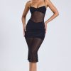 Embrace the allure of illusion with the Alviva midaxi dress. Crafted from premium 20D mesh that sculpts to your curves, it’s punctuated with sheer jersey panels at the bodice and skirt. It’s cut to a fit-and-flare silhouette, framed with a bust-flattering sweetheart neckline and enhanced with ruching at the skirt that creates a cinching wrap-over effect.