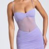 Embrace the allure of illusion with the Alviva midaxi dress. Crafted from premium 20D mesh that sculpts to your curves, its punctuated with sheer jersey panels at the bodice and skirt. Its cut to a fit-and-flare silhouette, framed with a bust-flattering sweetheart neckline and enhanced with ruching at the skirt that creates a cinching wrap-over effect.