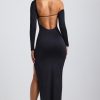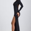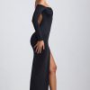 Designed to leave a lasting impression. A striking design crafted from our slinky jersey fabric, the Valeda maxi dress is cut to an asymmetric silhouette with an irregularly-shaped plunging neckline, anchored with custom-developed metal hardware. It features a thigh-high front split and a low open back, complete with an adjustable strap for a secure and comfortable fit.