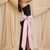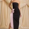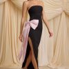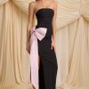 Make an entrance this festive season with the Angelique maxi dress. A head-turning take on a classic figure-skimming column silhouette, it’s crafted from stretch georgette with a strapless corseted bodice for enhanced support and shaping. The minimalist silhouette is elevated with an oversized taffeta bow embellishment in a contrasting light-pink hue, inspired by the magic of the holiday season.