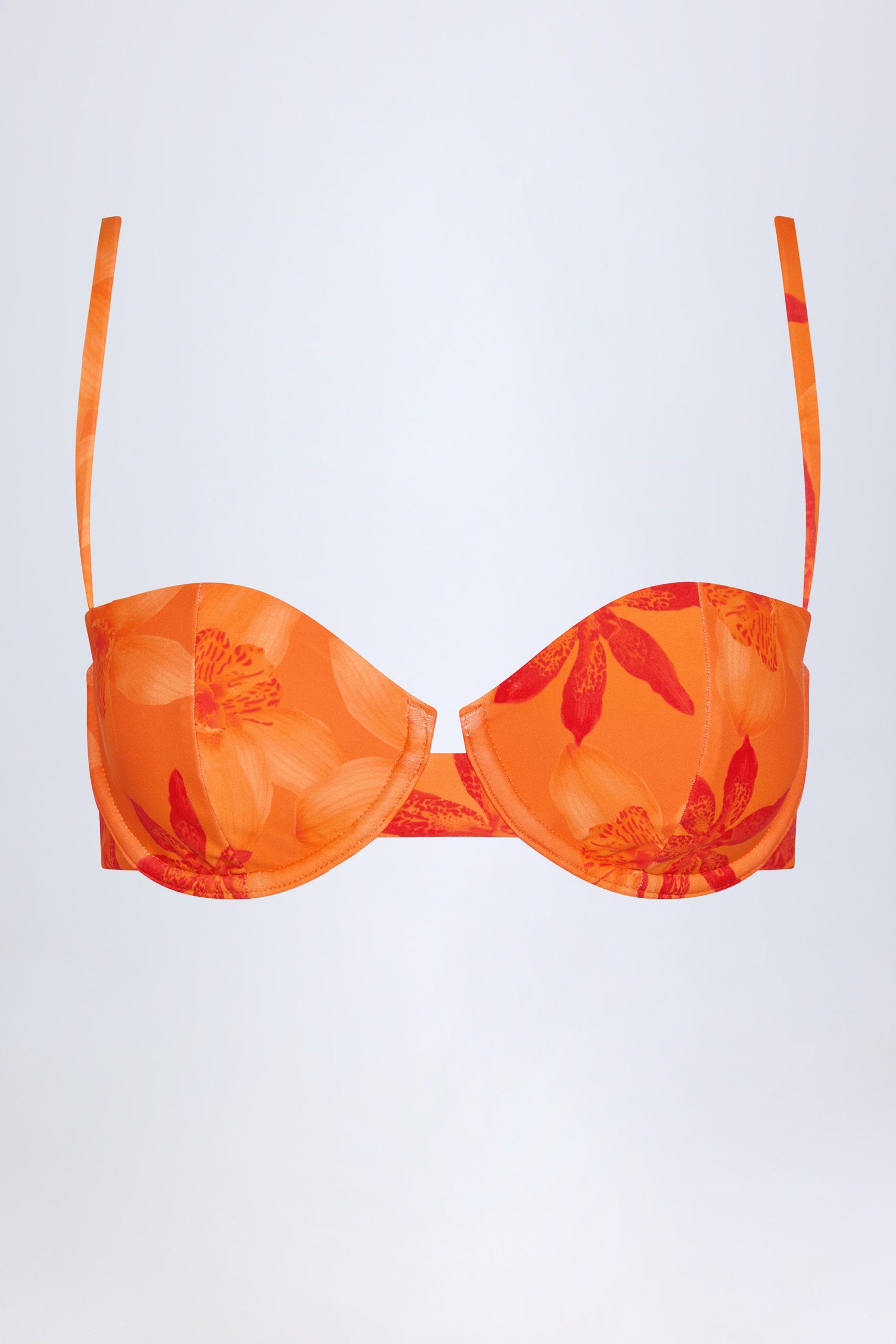 Underwired Balconette Bikini Top in Orange Orchid Print