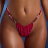 Vacation pending? You’ll want to pack the Curacao bikini bottoms. Crafted from our custom stretch-tricot swim fabric and designed with thong-back coverage for minimal tan lines, they feature an adjustable ruched channel at the back for customisable coverage and slender fixed side straps embellished with faceted beads that glimmer under sunlight.