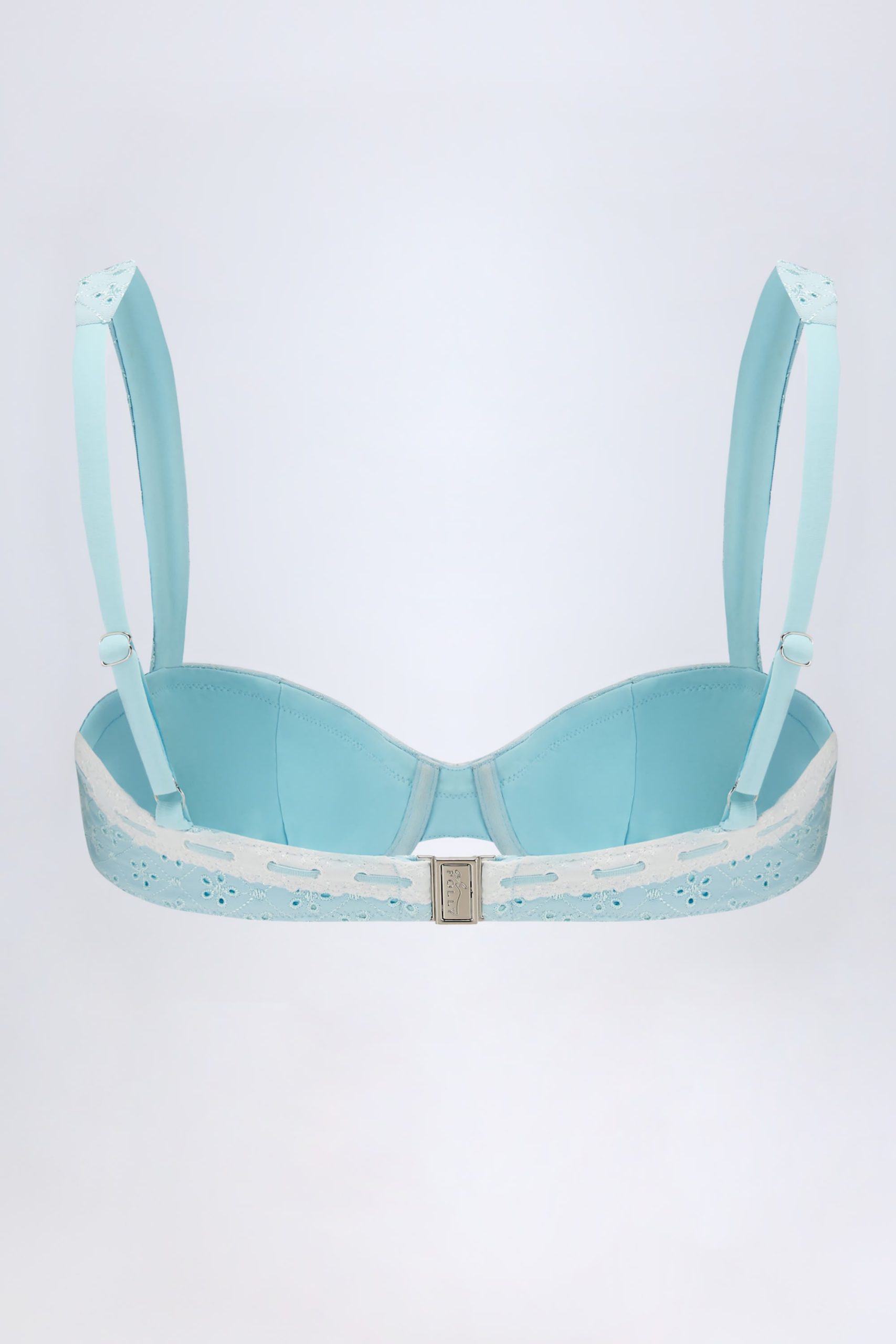 Broderie Anglaise Underwired Balconette Bikini Top in Powder Blue