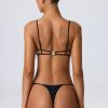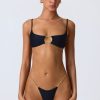 A summer favourite, reworked with statement detailing. Crafted from premium stretch-jersey swim fabric, these bikini bottoms are elevated with gold-tone chain-link detailing at each side strap, echoing the collection’s head-turning aesthetic. They’re designed with a high-cut leg and offer thong coverage at the back for minimal tan lines on sun-soaked days by the pool.