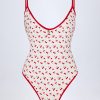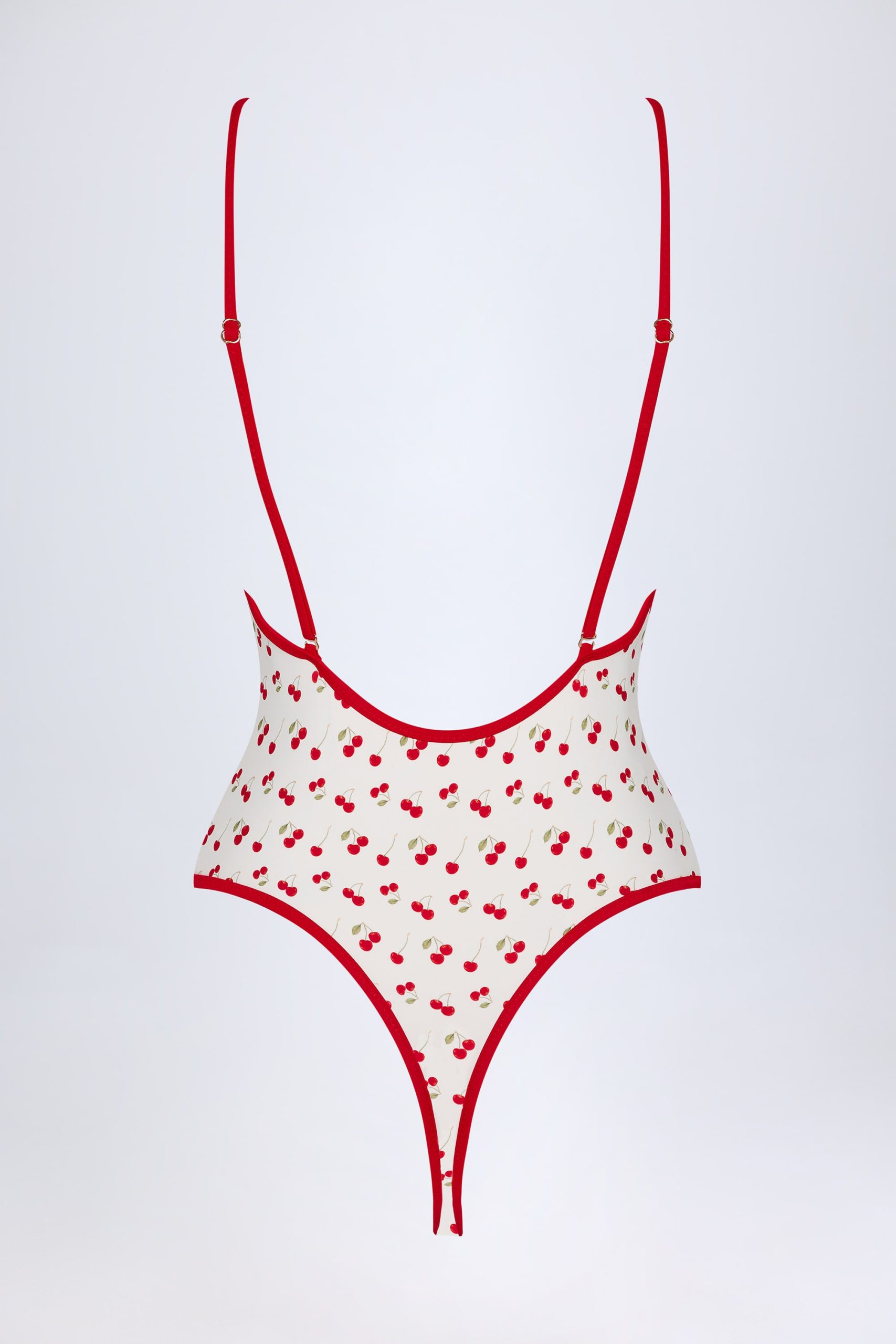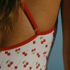 Charm-Detail Cross-Back Swimsuit in Cherry Print
