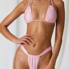 Signature swim silhouettes with a statement twist. A contemporary take on classic triangle styles, the Tropics bikini top is elevated with double-strap ties that can be adjusted for your perfect fit. It’s crafted from our custom-developed stretch-tricot swim fabric with a lustrous satin finish and features gathered cups for customisable coverage.