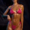 Drawstring Thong Bikini Bottoms in Hot Pink