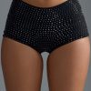 Dive into playful swim styles. Ideal for navigating poolside festivities that continue after dark, these hot pants are adorned with scores of hotfix rhinestones that sparkle with every move. They’re made from a premium stretch-jersey swim fabric with a soft-touch feel and are designed for a mid-rise fit.