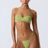 Classic design, statement details. An elevated take on timeless styles, these bikini bottoms are uplifted with a trio of hammered gold-tone rings at each fixed side strap. Available in three mix-and-match hues, they’re crafted from premium stretch-jersey swim fabric with cheeky back coverage and ruched side straps that provide a comfortable, non-restrictive fit.