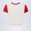 ‘90s spirit, cute summer staples. Crafted from premium lightweight jersey, the Salina T-shirt is cut to a cropped silhouette framed with a classic round neck and contrast binding trims that pair back perfectly with swim styles from the collection. It’s complete with an oversized logo graphic at the front.