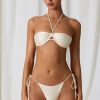 Pearl-Detail Cheeky Bikini Bottoms in Pearl White