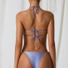 Poolside glamour, redefined. The Cortez bikini top is a statement style that’s sure to turn heads poolside thanks to the striking crossover halterneck strap, complete with lustrous faux-pearl embellishments. It’s crafted from a premium stretch-tricot swim fabric with a lustrous satin finish, features an adjustable ruched channel and is secured with dual straps at the back.