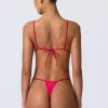 Ruched Thong Bikini Bottoms in Raspberry Pink
